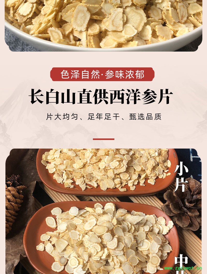 长白山西洋参切片花旗参含片批发东北特产人参片泡酒500g礼盒送礼