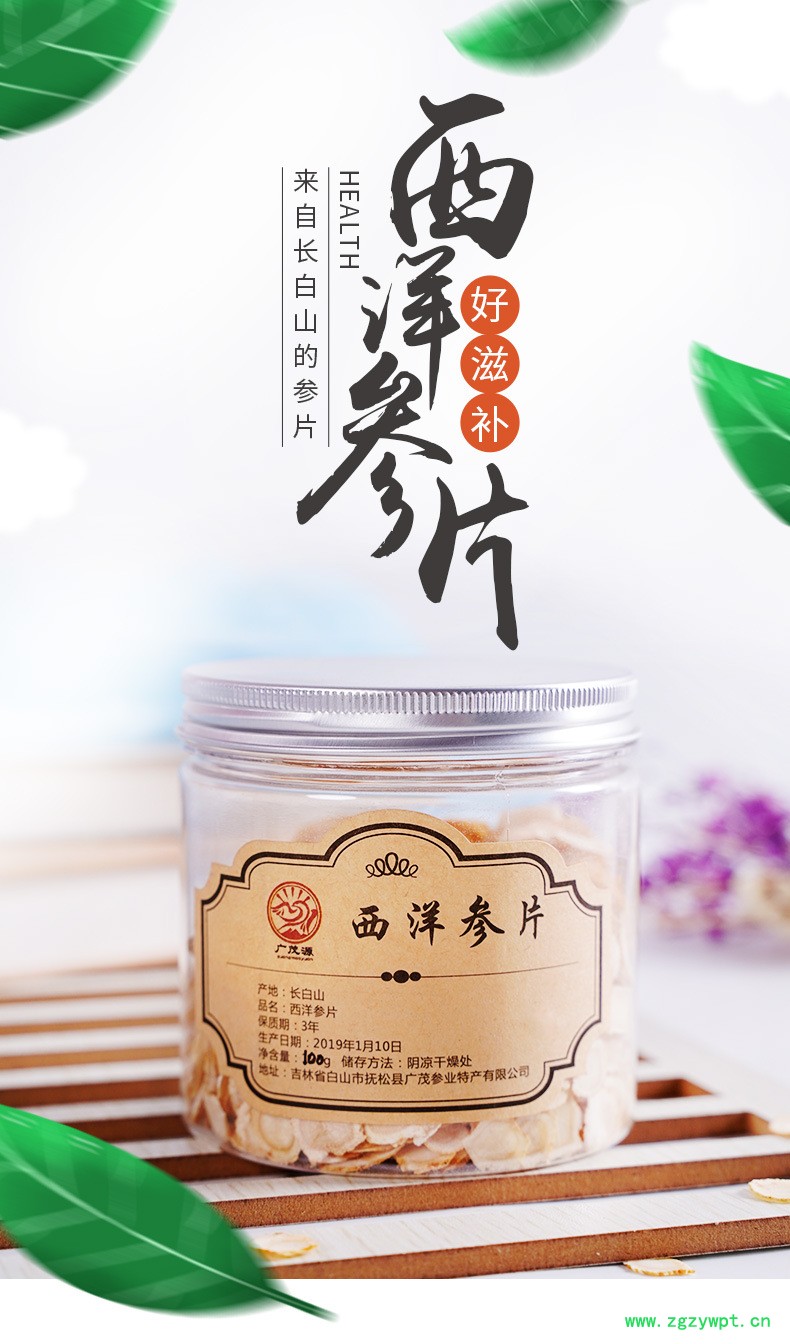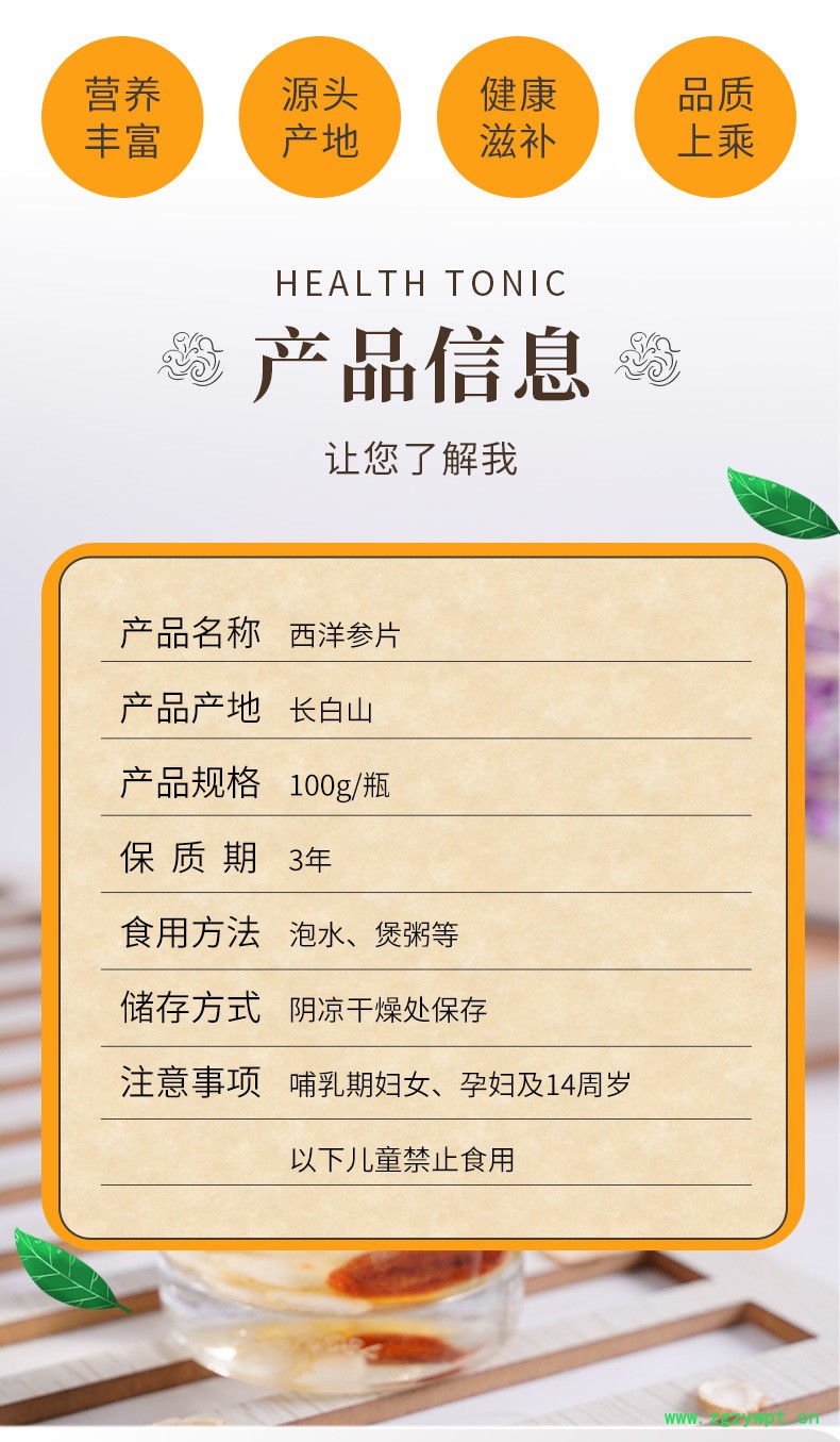 西洋参片 东北特产人参含片瓶装片1.0cm100g装西洋参切片厂家直卖