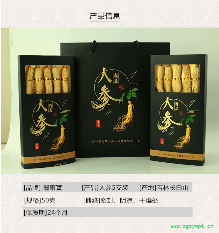 生晒参人参东北长白山新鲜原皮白参6年根礼盒装