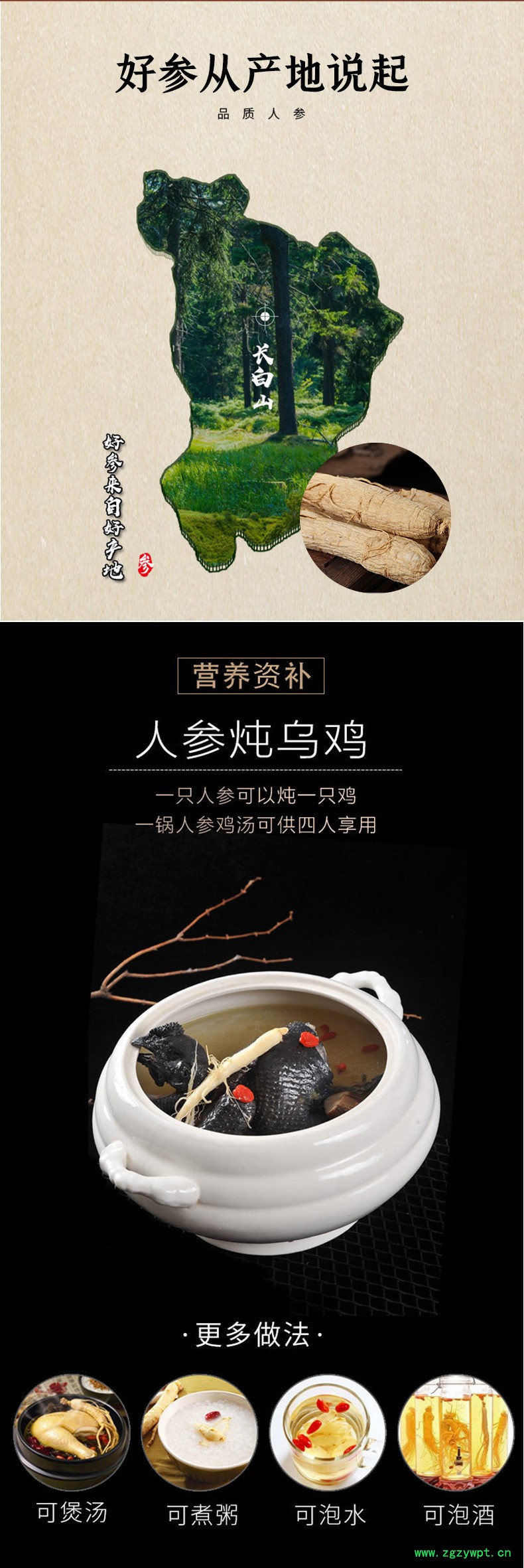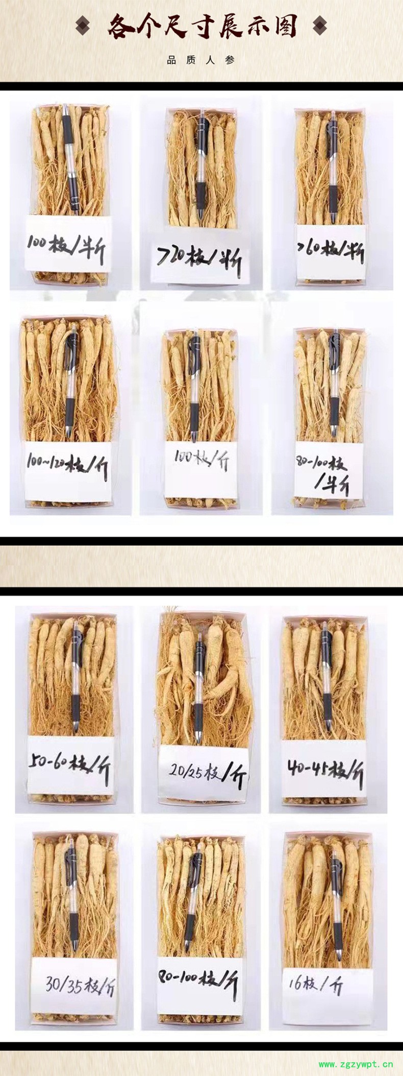 东北特产白参 长白山人参 白全须500克装6年白参批发多规格