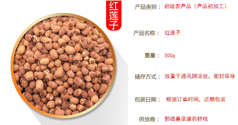 红莲子 统装 500g 产地湖南 录建药材栈一站式购物 量大从优