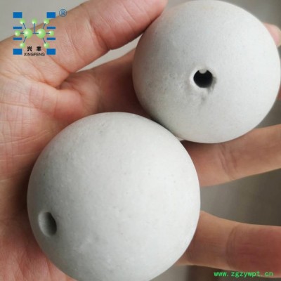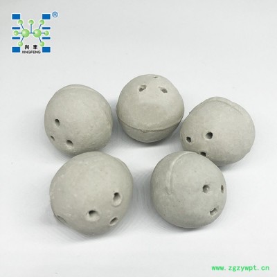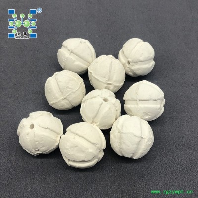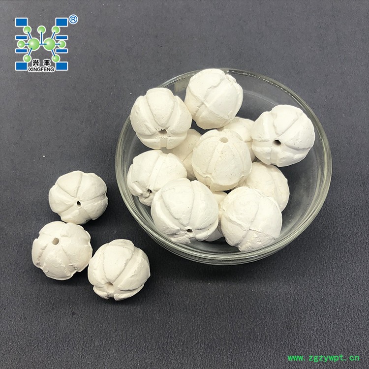 开孔瓷球、多孔瓷球是在惰性瓷球基础上开发的新型填料产品,它是在惰性瓷球上打一个孔或者多个孔,既具有惰性瓷球那样的机械强度、化学稳定性和热稳定性,又增加了比表面积和空隙率,从而增加了物料的分散性和通量,降低了系统的阻力。开孔瓷球广泛应用于石油、化工和天然气行业,替代惰性瓷球作催化剂的支撑覆盖填料,深受用户好评。