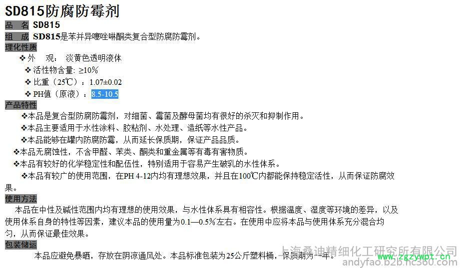 SD 815-10 涂料防腐剂 苯并异噻唑啉酮(杀菌剂表面活性剂厂家)