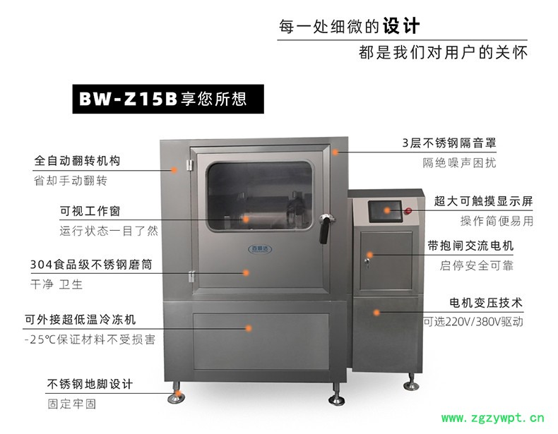 我公司生产的“百顺达”牌“BW”系列超微粉碎设备具有智能化控制.超微粉碎产量大、细胞破壁率高、超低温粉碎.全密闭无损耗.无粉尘溢出.高糖高油高纤维作业等优良突出的特点。超微粉碎的粉体粒径可达1~0.1μm,细胞破壁(膜)率达98%以上