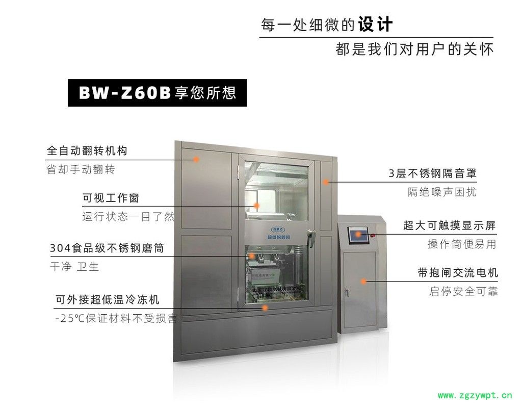 我公司生产的“百顺达”牌“BW”系列超微粉碎设备具有智能化控制.超微粉碎产量大、细胞破壁率高、超低温粉碎.全密闭无损耗.无粉尘溢出.高糖高油高纤维作业等优良突出的特点。超微粉碎的粉体粒径可达1~0.1μm,细胞破壁(膜)率达98%以上
