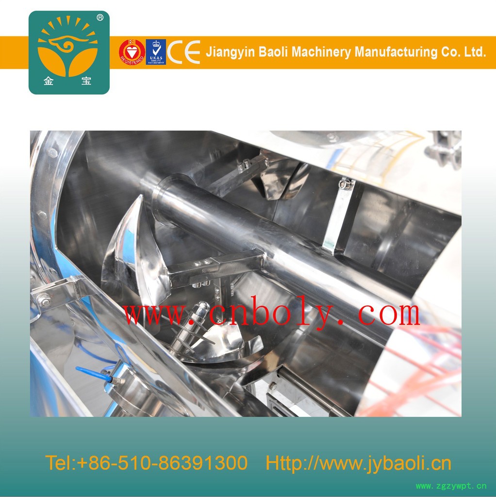 ??此混合机作用下的物料保持湍流的原理,搅拌器犁式的形状,配合搅拌速度,产生离心涡旋运动,致使受力物料三维扩散,并比如融合,适合于干粉、粒子与小块状,与低粘度浆料的混合。