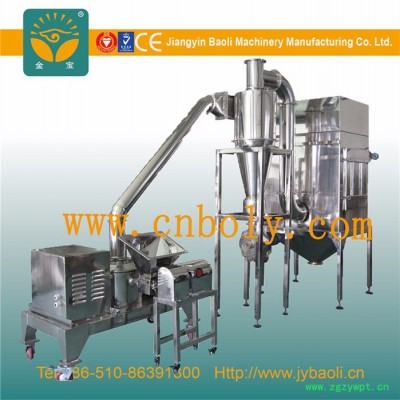 该机组适用于制药、食品、化工等其他行业。具有风冷,无筛网等多种性能,特别适用于粉碎纤维状和带一定油脂的物料。