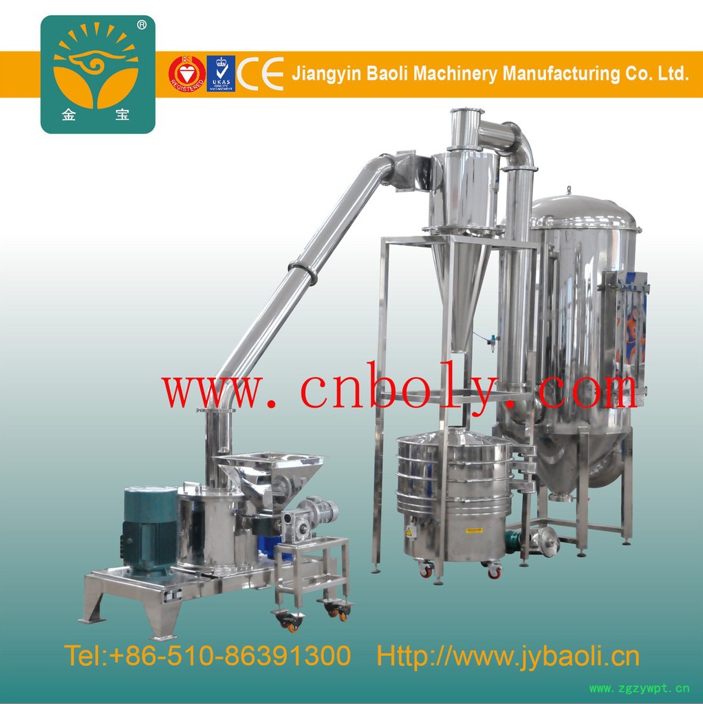 该机组适用于制药、食品、化工等其他行业。具有风冷,无筛网等多种性能,特别适用于粉碎纤维状和带一定油脂的物料。