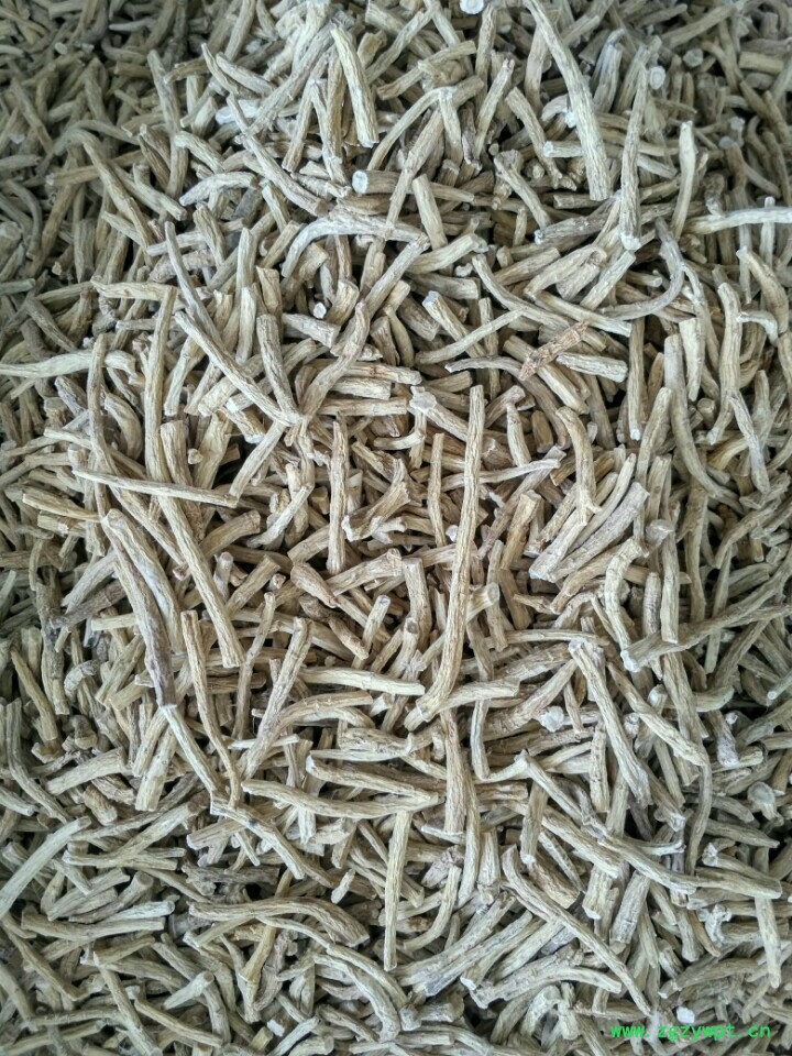 [性 状]:本品呈纺锤形、圆柱形或圆锥形,长2~8cm,直径0.5~2cm。表面浅黄褐色或黄白色,可见横向环纹及线状皮孔,并有细密浅纵皱纹及须根痕。断面平坦,浅黄白色,略显粉性,皮部可见黄棕色点状树脂道,形成层环纹棕黄色,本部略呈放射状纹理。气微而特异,味微苦、甘。