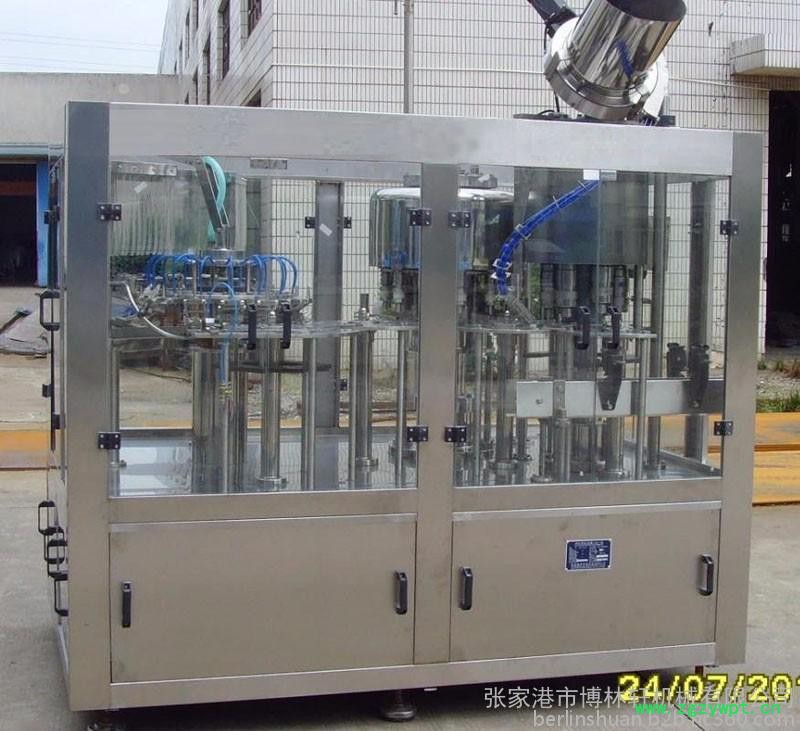 该机集冲洗、灌装、旋盖为一体的全自动多功能联合机组,它适用于各种无气饮料、油醋、果酒、矿泉水、纯净水的自动冲洗、灌装、封口,该线设计独特、式样新颖、功能齐全、适应性强、操作使用方便、外形造型美观、自动化程度高,是目前**好灌装设备。