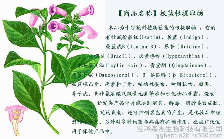 | 提取来源 | 板蓝根为十字花科植物菘蓝和草大青的根 |