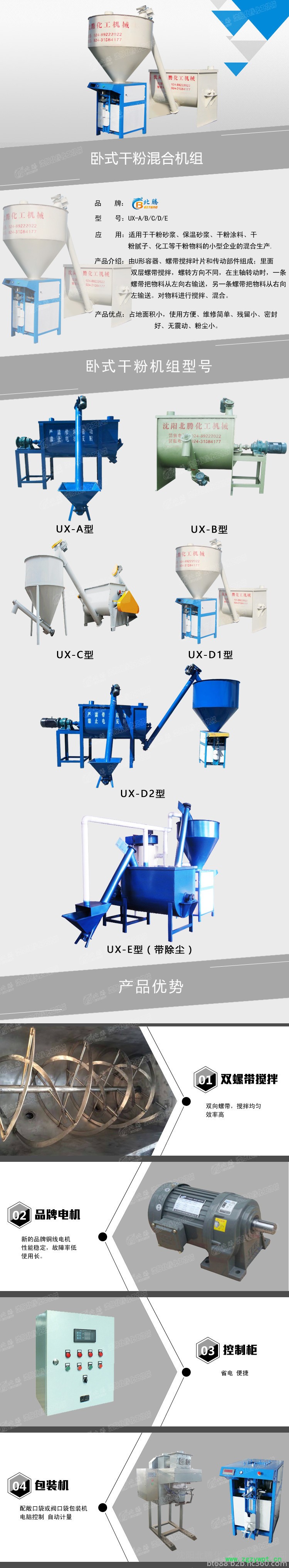 UX型干粉混合机适用于干粉砂浆,保温砂浆,苯板胶,填缝剂,腻子粉等干粉类产品。