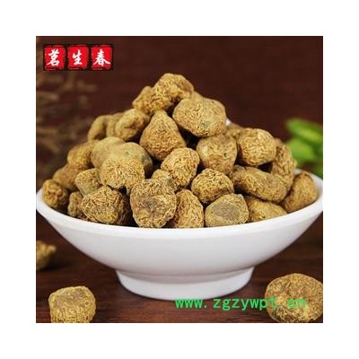 性状:呈不规则的扁球形,表面黄棕色或灰黄色,多皱缩。质硬而脆,断面黄褐色,角质样,有蜡样光泽,味苦、微辛,大小不等。