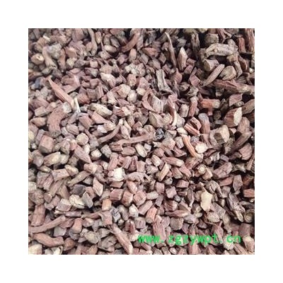 [性     状]:该药材丹参多为带根茎的根,根茎粗短,有茎基残余,下着生多数细长的根。根呈圆柱形,稍弯曲,表面呈砖红色,粗糙,具多数纵沟或皱纹,有须根痕,外部栓皮常鳞片状剥落,皮层有时开裂,长8~22cm,直径5~12mm,质坚脆,易折断,断面不平,疏松有裂隙,皮部棕渴色或砖红色,韧皮部狭。形成层明显,淡棕色,木质部导管束灰黄色或黄白色,放射状排列。气微,味微苦、涩,以条粗壮、色紫红者为佳。