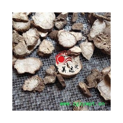 [性 状]:该品根不规则圆柱形,或剖切成半圆柱形或块状,常弯曲,弯曲处有深陷横沟而呈结节状,长5~15cm,直径1~5cm。表面灰黄色,有细皱纹及横向突起的皮孔。质坚重,断面平坦,灰白色,粉性。气微,味苦。