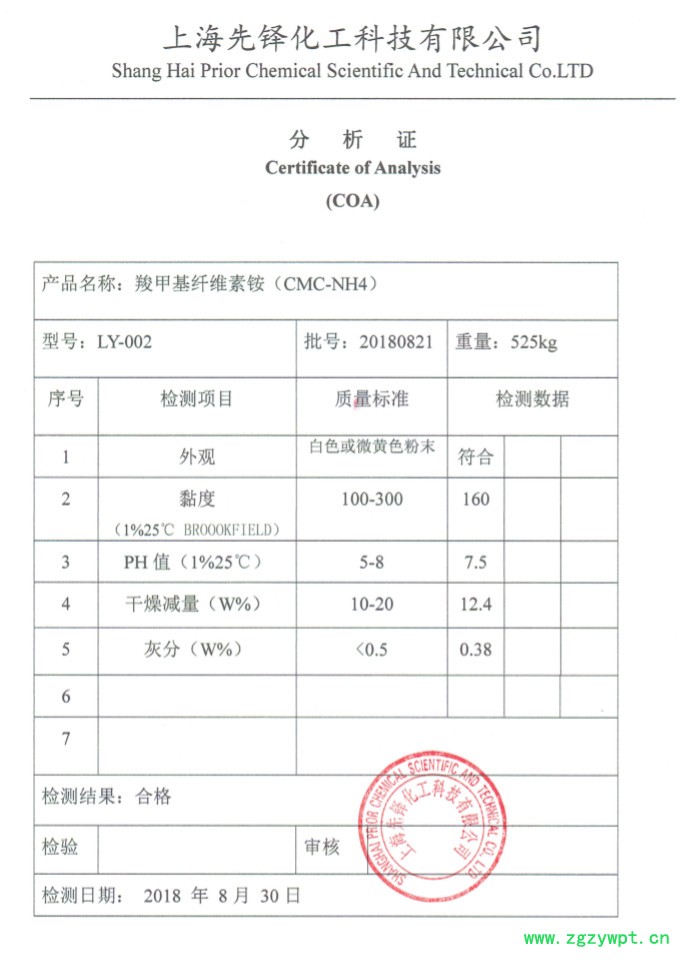 羧甲基纤维素铵(CMC-NH4)是一种特殊用途的粘合剂,主要用于高品质的SCR脱硝催化剂,解决了CMC中碱金属对SCR催化剂结构、活性主体的影响,SCR催化剂的性能、使用寿命得到提高,有利于提高SCR催化剂的市场竞争力。与CMC相比,具有粘结性好,焙烧后残留少的特点,目前国内用于脱硝行业的CMC-NH4完全依赖进口。