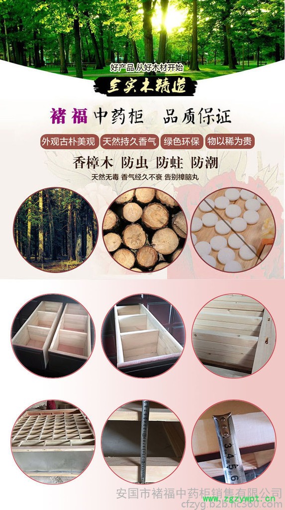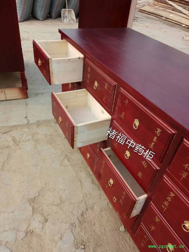 药柜材质:框架和抽屉选用蒸熏过的**樟松木,抽屉面板采用精选桐木板,抽屉底选用九厘板,中药柜的底部和后背(40公分)有铁皮封底防鼠