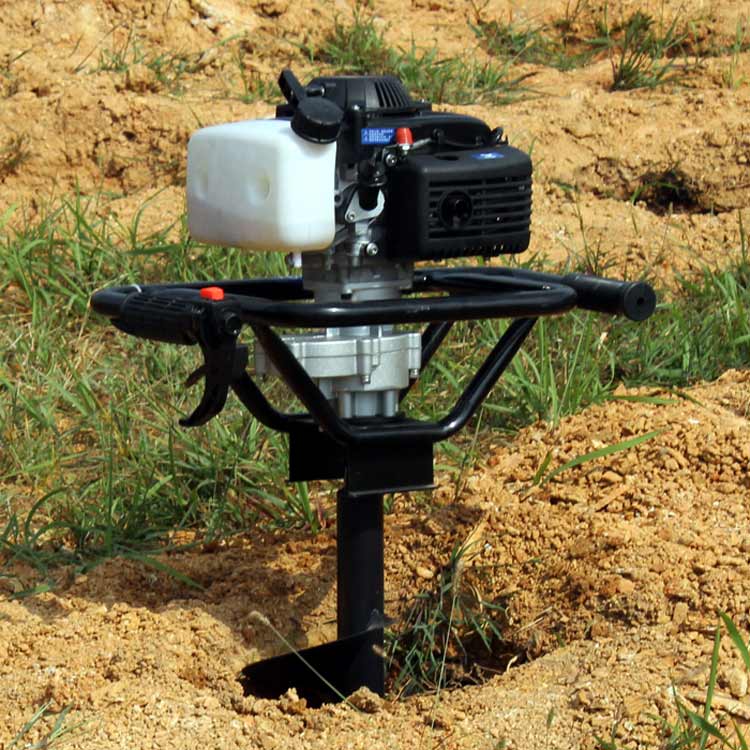 挖坑机细节展示:1、大绳轮易启动:拉动顺畅,自动弹钢片弹簧,启动快。2、空气滤清器:防止灰尘,动力更持久。3、合金齿轮箱:密封性高,耐用耐磨,可添加黄油。4、半透明油箱:剩余油量可观,燃油配比25:1。5、加速开关:使用灵活方便,加速开关+熄火开关。6、透明油泡**输油管+化油器。注意:加油时请按照比列添加汽油机油!!