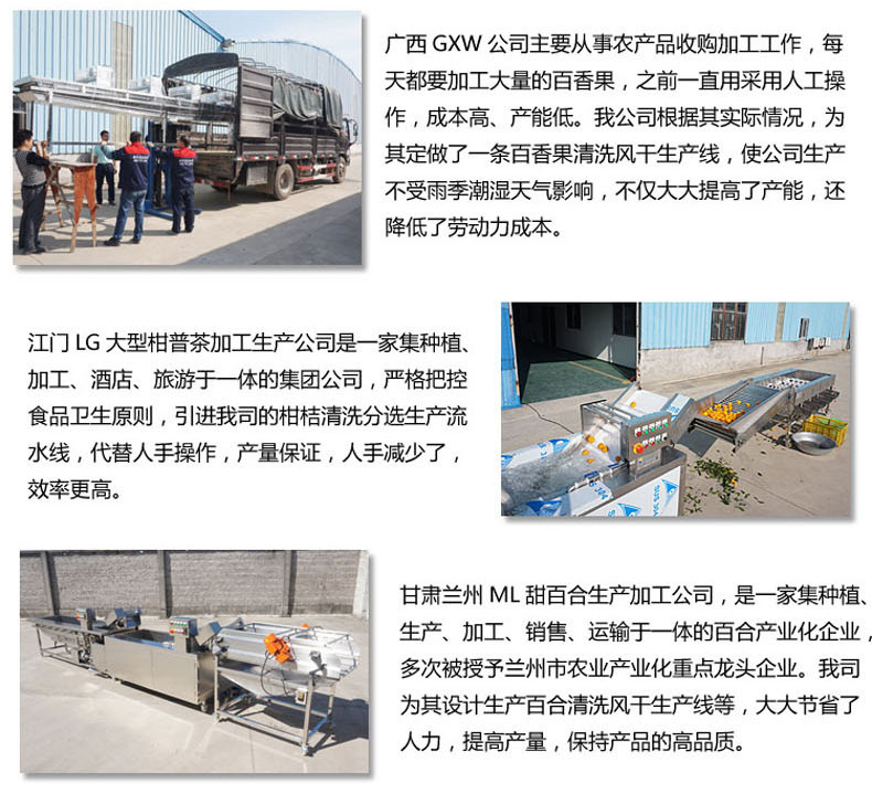 我公司可根据顾客要求,订做各种蔬果分拣、清洗、切割、风干生产线