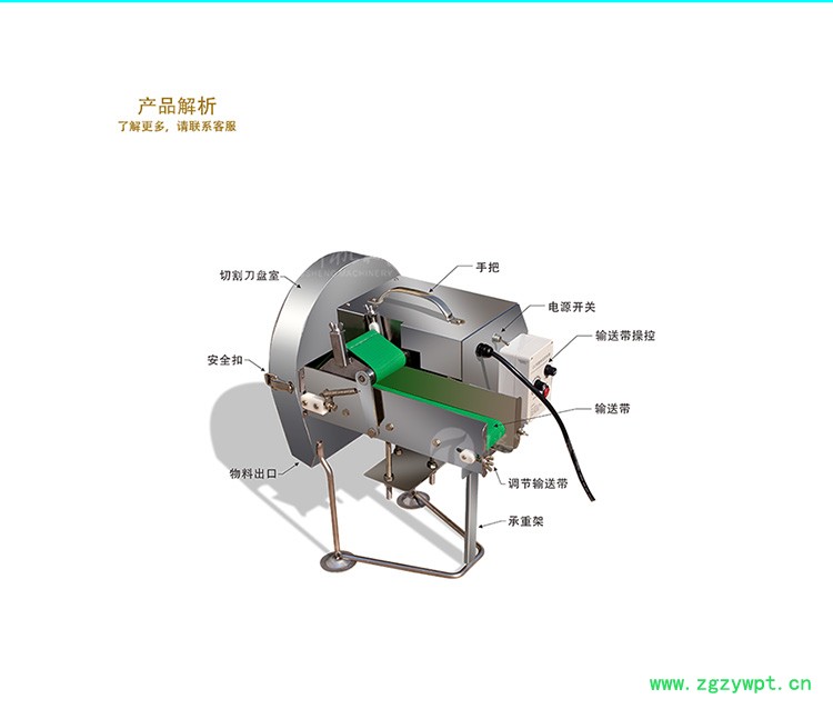 切葱机是一款皮带输送的切割机,本机外形小巧精美,结构新颖,皮带输送的设计,可以切葱、芹菜、辣椒、韭菜、日本小黄瓜、香菜等等,机器带调速器,可调输送带速度,当输送带调快,切出来的材料**长,输送带调慢,切出来的材料**短。通过调节输送带,可以切段、切粒、切丝、切碎。例如葱段、葱花、辣椒丝(辣椒圈)、芹菜粒、韭菜碎等等。本机操作简单,清洗方便,性能稳定,安全可靠。适合餐饮行业,单食堂,食品加工厂等单位使用。