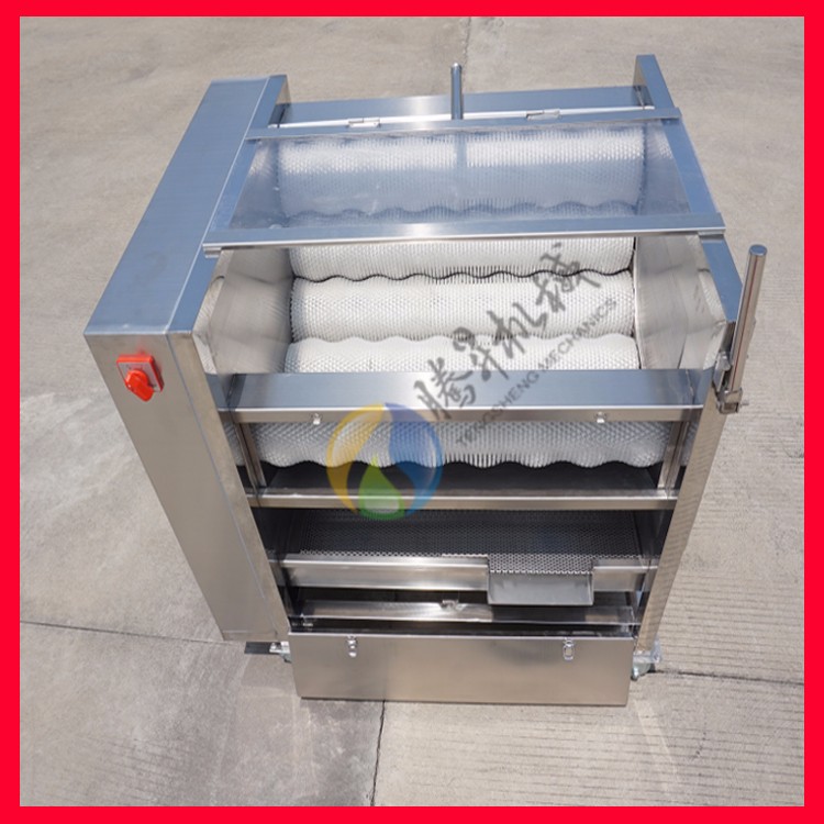 详细介绍: 瓜果毛辊清洗脱皮机主要由电机、变速器、毛棍组等构成,是我厂根据国内外对根薯类加工机械的特点设计制造的,采用毛刷摩擦原理,广泛适用于圆形,椭圆形果蔬比如生姜、胡萝卜、山芋、土豆、红薯、等根薯类蔬菜的清洗、脱皮。瓜果毛辊清洗脱皮机具有外形美观和操作方便,清洗脱皮容积大、效率高,耗能小,可连续清洗,操作简单,使用寿命长等特点,清洗棍为经特殊工艺处理的尼龙线绳轧制材料,脱皮为加硬材料,两者皆经久耐用,耐磨性能相当好。全机采用**不锈钢材质,旋转出料,不锈蚀、清洁卫生。也可在机器底部加装废料收集盘,防止污水皮屑等污染地面。