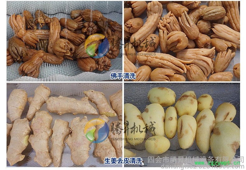 瓜果毛棍清洗脱皮机适用于圆形、椭圆形果蔬比如生姜、胡萝卜、山芋、土豆、红薯、等根薯类蔬菜的清洗、脱皮。