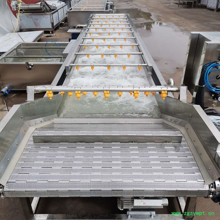 2、气泡清洗机(鼓泡清洗机)输送部分采用SUS304不锈钢网带,运行平稳、使用寿命长等特点,符合食品卫生要求。