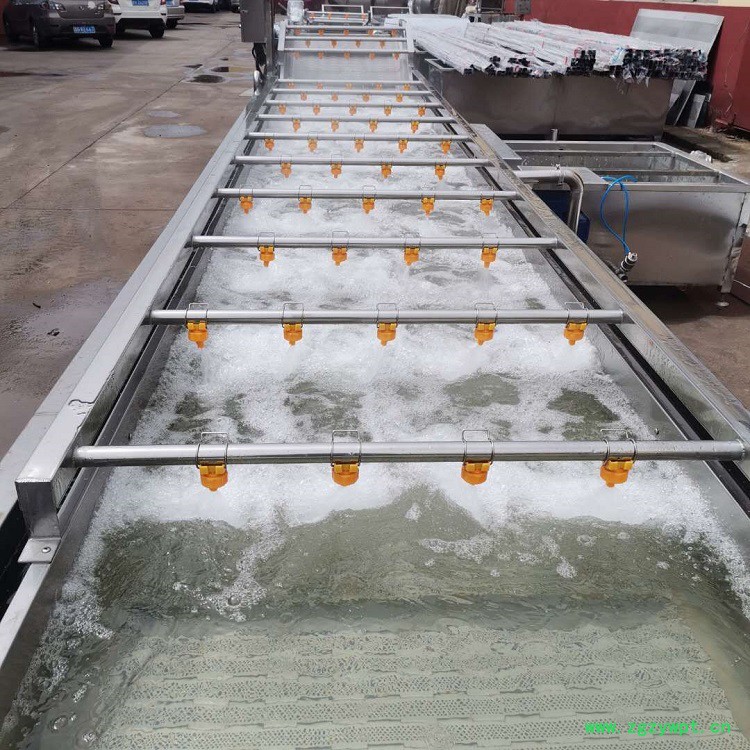 1、气泡清洗机(鼓泡清洗机)设备除电机、轴承等标准件外均采用不锈钢SUS304/2B材料制作,符合出口食品卫生要求。设备中设有气泡发生装置,使物料呈翻滚状态,产品表面农残的功效,同时可加入适量的药剂,进行消毒固色。漂浮物可以从溢流槽溢出,沉淀物从排污口排出,以达到清洗的目的。具有洗洁净高、节能、节水、设备稳定可靠等特点。
