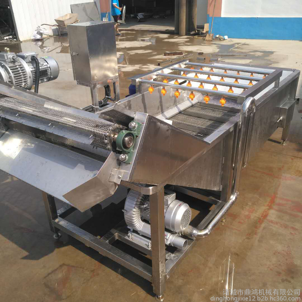 该设备适用于球形或长条园形的果蔬清洗。果蔬原料在清洗过程中不停地作任意方向旋转,刷果、喷淋同时进行,洗净度高,有效防止农残。操作简单、维修方便、方便连线等特点:水浴气泡清洗机