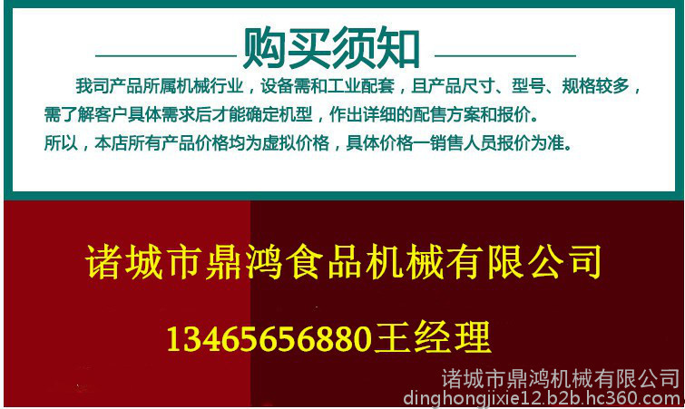 诸城市鼎鸿食品机械有限公司,位于山东省诸城市。是专业从事肉类加工机械开发、设计、制造及销售的现代化企业。以生产食品机械为主,专业从事斩拌机,滚揉机,灌肠机,盐水注射机,烟熏炉、刨肉机,肉丸机,丸子机,禽类切块机、 拌馅机,活化嫩化机,刨肉机,风干机、绞肉机、鱼肉采肉机、真空包装机、扎线机、冻肉切块机、解冻机、油炸机、蔬菜清洗机,毛刷清洗机,洗筐机、餐具清洗流水线、滚筒清洗机、滚筒拌料机、滚筒风干机、千页豆腐加工设备、千叶豆腐切丝机、鱼豆腐加工设备:斩拌机、灌装机、装盘机、蒸煮箱、切块机、切片机、不锈钢盘子、小料车、工作台、肉类烧毛机等。产品行销全 各地,现已拥有各类机械加工设备,能够满足不同层次用户的需要。