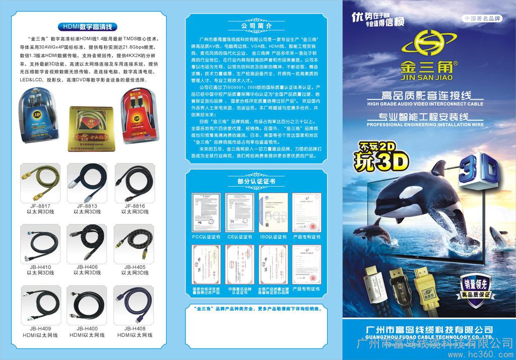 广州市番禺富岛线缆科技有限公司成立于1993年5月,是一家专业生产“金三角”品牌高品质AV线、电脑周边线、VGA线、HDMI线、智能工程安装线、麦克风线的现代化企业,“金三角牌”产品多年来一直处于较高的行业地位,在行业内具有很高的声誉和市场美誉度。公司本着以市场为先导,以**的科技及创新的精神,不断进取,精益求精;技术力量雄厚、生产检测设备齐全、并拥有一批高素质的管理人才、专业工程技术人才。公司已通过了ISO9001:2000版的国际质量认证体系认证。产品已经中国中轻产品质量保障中心认证为“全国产品**、信誉保证放心品牌”、“**合格评定质量信得过好产品”。 欢迎国内外各界人士来电来函,洽谈业务。本厂将竭诚与您携手合作,共创美好未来!