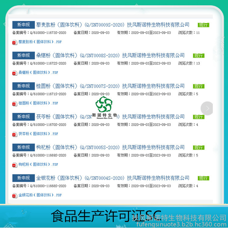 | 微生物 | 细菌总数<1000cfu/g, 霉菌总数<25cfu/g ,大肠杆菌<10cfu/g ,致病菌不得检测 (可以生产非辐照产品,在购买时请提醒) | GB | ||||