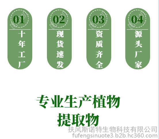 扶风斯诺特生物技术有限公司工厂位于陕西省宝鸡市扶风县绛帐镇扶风科技工业园,是一家专注于天然健康原料的研发生产销售一体的高新技术企业。公司严格执行质量控制标准,所有产品均按照相应企标和国标进行生产。从源头植物种植开始严把质量关。工厂主要生产设备有:多功能提取罐、单效外循环真空浓缩器、真空浓缩罐、醇沉灌、结晶灌、层析柱、离心机、高速管式过滤机、真空干燥箱、喷雾干燥塔、混合机等、所有设备均为不锈钢材质,符合食品生产GMP要求。