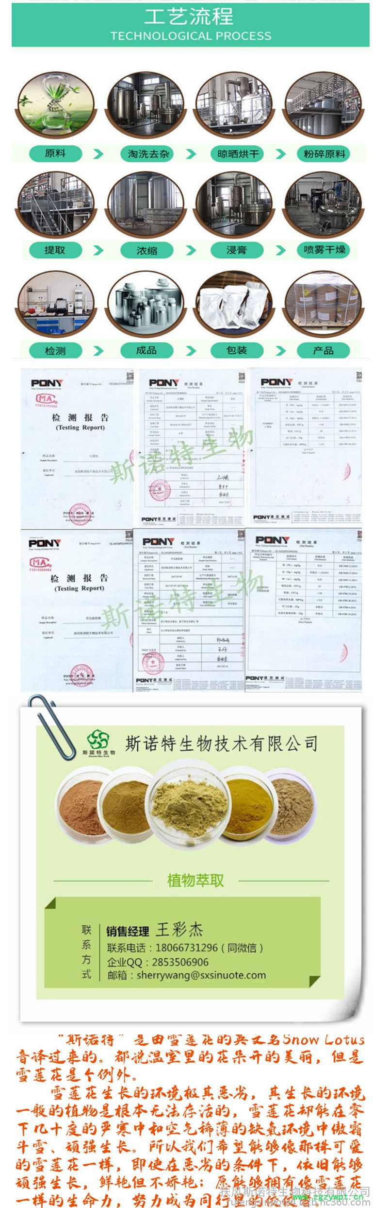 斯诺特生物科技公司主营:提取物比例产品、含量产品、生粉系列、多糖、果蔬粉、五谷杂粮粉,小分子肽粉。保健品原料、饲料原料、化妆品原料,植物提取物源头厂家,可根据客户要求定制生产,多规格供应。