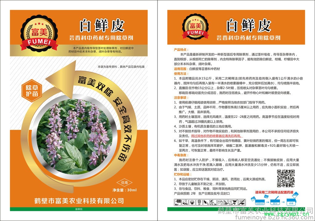 本产品是新研制开发的一种新型苗后专用除草剂,通过茎叶吸收,传导至杂草体内,直到根部,从根部死亡的除草剂,内含特殊除草因子,能有效防除白鲜皮、柑橘、柠檬田中大部分禾本科杂草、阔叶杂草。