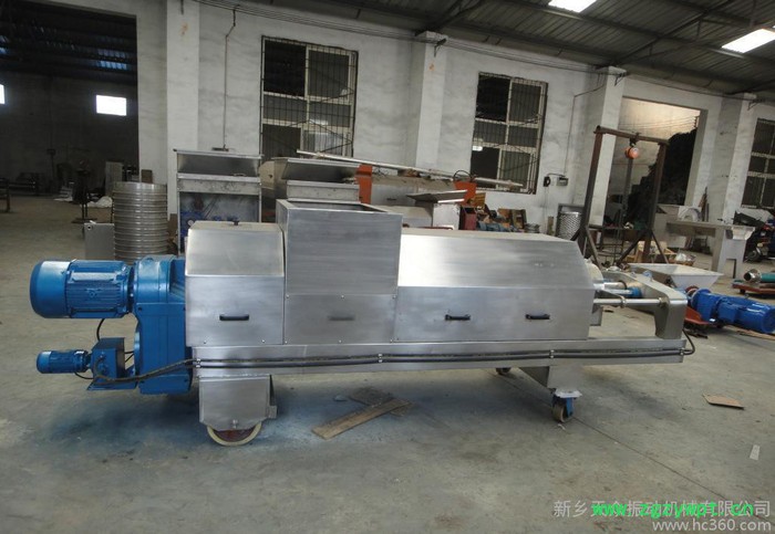 双螺旋压榨机为可连续式双螺旋压榨机,本机用于含有一定纤维质或有粘性的其宏观世界物料的固液分离作业.如发酵后的葡萄皮渣、生姜、菠菜、橡胶、中草药、冬枣等含一定纤维的水果和蔬菜提汁,也用于除过枝或含少量小枝的沙棘果的连续榨汁,其筛孔专门按沙棘子的大小特殊制造的。