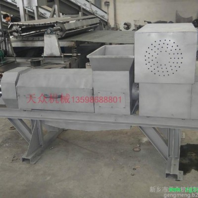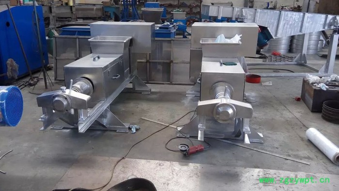 待处理的物料经过泵等工具均匀地输送到螺旋压榨机进料口,经过螺旋叶片挤压和筛网的过滤,水或者汁液经过筛网流到机器下面的接水盘收集后经过管路接走。分离出的固体从后端排出。不同的物料选用不同的筛网(孔径0.1-1mm)、不同的螺旋转速以及适当调整出渣口干湿调节装置来达到**的产量以及渣的干湿程度(或者说通过调整出渣口干湿调节装置以及适当螺旋转速来达到脱水效果和产量的**配合)------含纤维越高,产量越大,脱水后的渣干度也越高;筛网孔径越小,处理的物料的颗粒直径也越小。