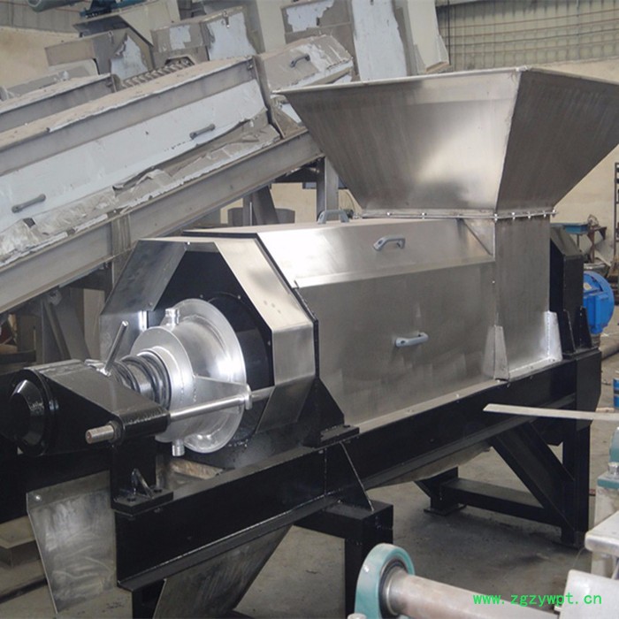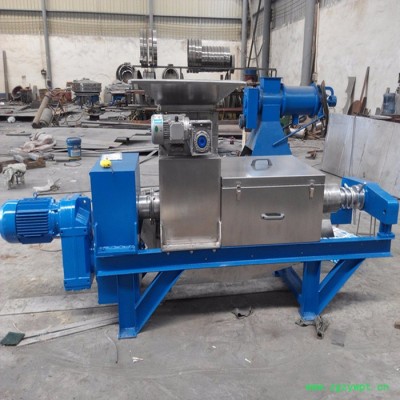 待处理的物料经过泵等工具均匀地输送到螺旋压榨机进料口,经过螺旋叶片挤压和筛网的过滤,水或者汁液经过筛网流到机器下面的接水盘收集后经过管路接走。分离出的固体从后端排出。不同的物料选用不同的筛网(孔径0.1-1mm)、不同的螺旋转速以及适当调整出渣口干湿调节装置来达到**的产量以及渣的干湿程度(或者说通过调整出渣口干湿调节装置以及适当螺旋转速来达到脱水效果和产量的**配合)------含纤维越高,产量越大,脱水后的渣干度也越高;筛网孔径越小,处理的物料的颗粒直径也越小。