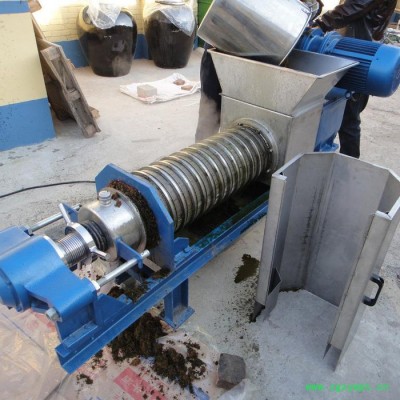 待处理的物料经过泵等工具均匀地输送到螺旋压榨机进料口,经过螺旋叶片挤压和筛网的过滤,水或者汁液经过筛网流到机器下面的接水盘收集后经过管路接走。分离出的固体从后端排出。不同的物料选用不同的筛网(孔径0.1-1mm)、不同的螺旋转速以及适当调整出渣口干湿调节装置来达到**的产量以及渣的干湿程度(或者说通过调整出渣口干湿调节装置以及适当螺旋转速来达到脱水效果和产量的**配合)------含纤维越高,产量越大,脱水后的渣干度也越高;筛网孔径越小,处理的物料的颗粒直径也越小。