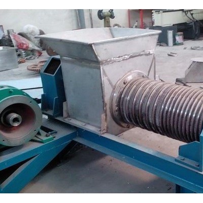 该设备主要有机架、送料部分,压榨部分,传动部分,电控部分组成。其中双螺旋包括反向旋转的输送螺旋和压榨螺旋;单螺旋压榨机除了带有强力进料装置和止退装置外,其螺旋分为进料螺旋、压榨螺旋、挤压螺旋三部分。
