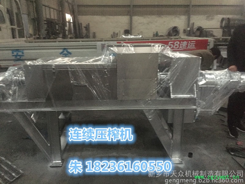 本压榨机用于含有一定纤维质或有粘性的其宏观世界物料的固液分离作业.如发酵后的葡萄皮渣、生姜、菠菜、橡胶、中草药、冬枣、茶叶等含一定纤维的物料脱水或提汁,也用于除过枝或含少量小枝的沙棘果的连续榨汁,其筛孔专门按物料的大小特殊制造的。