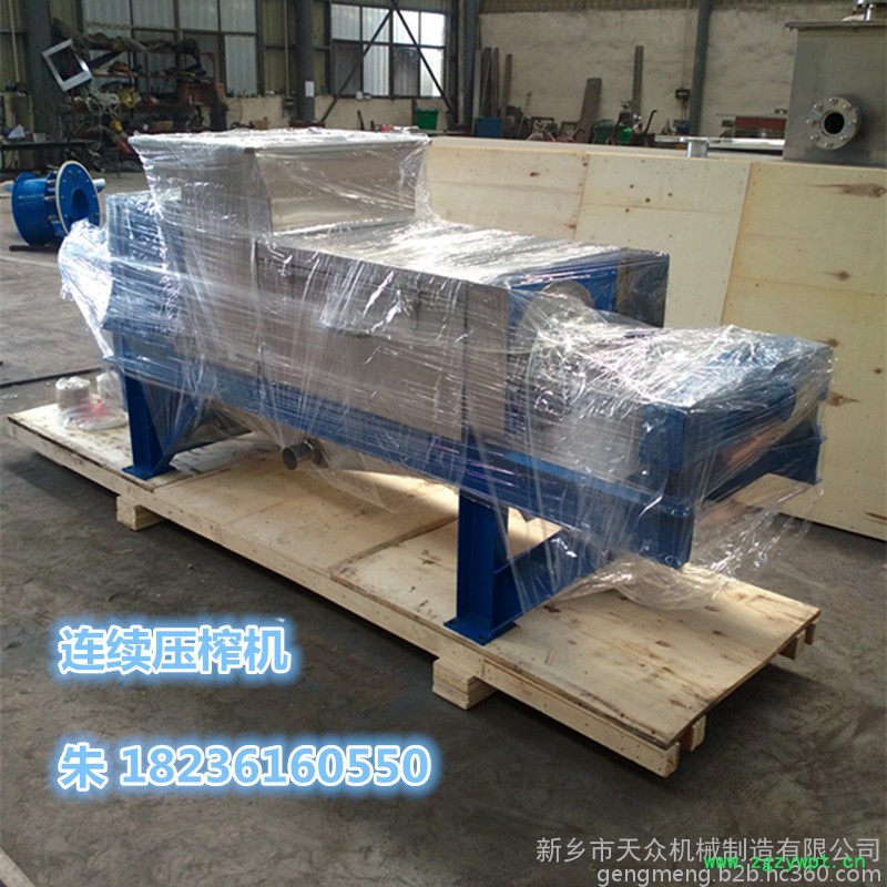 待处理的物料经过泵等工具均匀地输送到螺旋压榨机进料口,经过螺旋叶片挤压和筛网的过滤,水或者汁液经过筛网流到机器下面的接水盘收集后经过管路接走。分离出的固体从后端排出。不同的物料选用不同的筛网(孔径0.1-1mm)、不同的螺旋转速以及适当调整出渣口干湿调节装置来达到**的产量以及渣的干湿程度(或者说通过调整出渣口干湿调节装置以及适当螺旋转速来达到脱水效果和产量的**配合)------含纤维越高,产量越大,脱水后的渣干度也越高;筛网孔径越小,处理的物料的颗粒直径也越小。