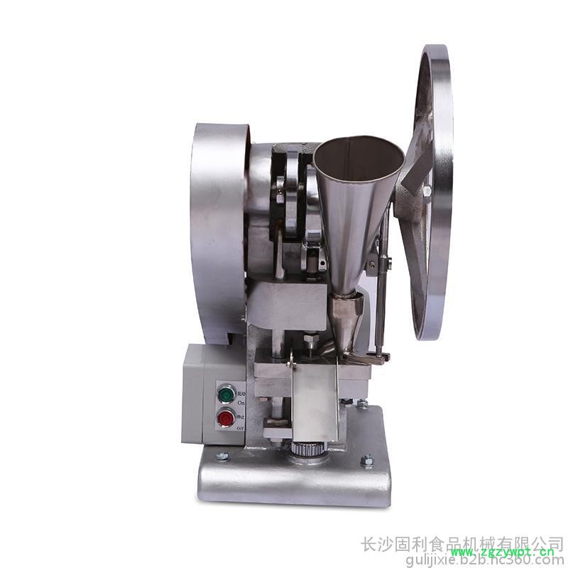 单冲压片机适合压制中药片剂、西药片剂、咀嚼片、钙片、口含片、螺旋藻片、奶片、糖果片、泡腾片、卫生球、芳香片、味块、消毒片、催化剂、化肥片、农药片、纽扣电池、电子元件、冶金粉末陶瓷粒等。是一种小型台式电动(手动)连续压片的机器,机上装一付冲模,物料的充填深度,压片厚度均可调节。可根据客户要求提供各种形状的模具。 单冲压片机能将粉粒状原料压制成片剂,可广泛适用于制药厂、化工厂、医院、科研单位、实验室试制和小批量生产。本机性能优良,适应性强,使用方便,易于维修,体积小,重量轻,无电时也可手摇片。本机只装一付冲模,物料的充填深度,压片厚度均可调节,能适应制药行业压制各种中、西药征剂的要求和其它行业压制各种类似产品的要求,深受各行业广大用户的欢迎。