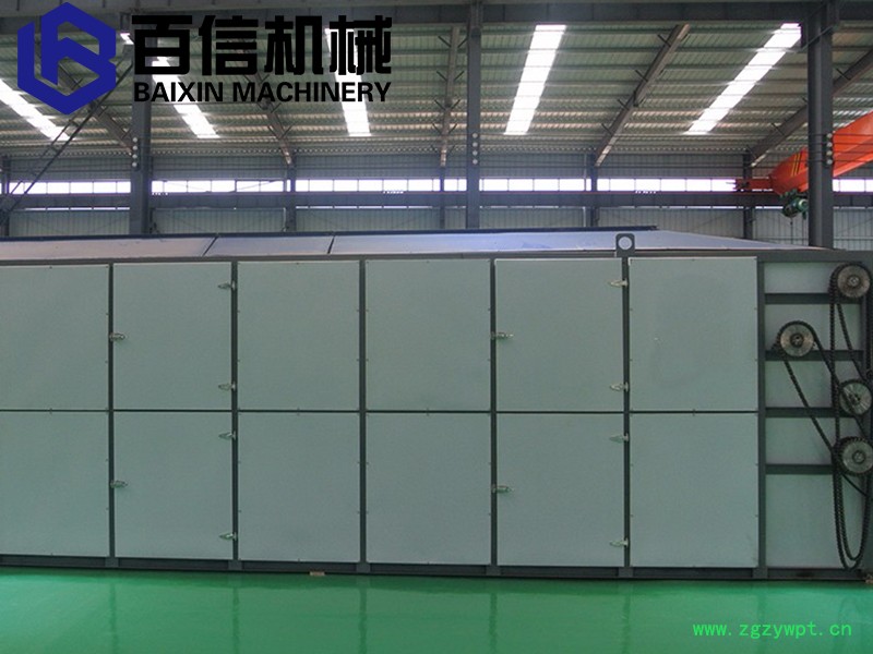 百信多层连续式烘干机脱水干燥迅速, 操作方便,效率运行。能满足大批量连续生产的需求,网带式干燥设备广泛应用于食品(如面条、面皮)、干果(大枣、巴旦木、腰果、开心果)、花茶(玫瑰花、山药、金银花、山楂花)、农副产品(如玉米、山药烘干袪潮)、脱水蔬菜(如大蒜、山药、山药、辣根、洋葱、白菜干、生姜、小香葱、辣根、菠菜)、瓜果(如山药、薯片、山药、葡萄干、哈密瓜)、中草药、(连翘、黄蜀葵、枸杞、)水产品、土特产品、饲料及化工原料等加工之片状、条状、块状和颗粒状物料的脱水干燥作业。