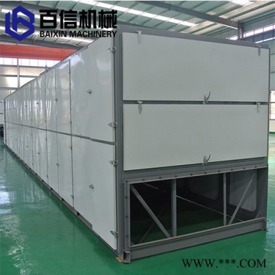 百信多层连续式烘干机脱水干燥迅速, 操作方便,效率运行。能满足大批量连续生产的需求,网带式干燥设备广泛应用于食品(如面条、面皮)、干果(大枣、巴旦木、腰果、开心果)、花茶(玫瑰花、山药、金银花、山楂花)、农副产品(如玉米、山药烘干袪潮)、脱水蔬菜(如大蒜、山药、山药、辣根、洋葱、白菜干、生姜、小香葱、辣根、菠菜)、瓜果(如山药、薯片、山药、葡萄干、哈密瓜)、中草药、(连翘、黄蜀葵、枸杞、)水产品、土特产品、饲料及化工原料等加工之片状、条状、块状和颗粒状物料的脱水干燥作业。
