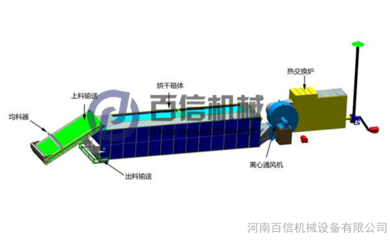 百信多层连续式烘干机脱水干燥迅速, 操作方便,效率运行。能满足大批量连续生产的需求,网带式干燥设备广泛应用于食品(如面条、面皮)、干果(大枣、巴旦木、腰果、开心果)、花茶(玫瑰花、山药、金银花、山楂花)、农副产品(如玉米、山药烘干袪潮)、脱水蔬菜(如大蒜、山药、山药、辣根、洋葱、白菜干、生姜、小香葱、辣根、菠菜)、瓜果(如山药、薯片、山药、葡萄干、哈密瓜)、中草药、(连翘、黄蜀葵、枸杞、)水产品、土特产品、饲料及化工原料等加工之片状、条状、块状和颗粒状物料的脱水干燥作业。
