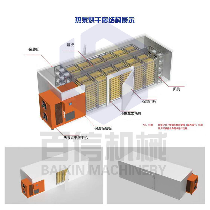 百信玄参烘干机是一种热量提升装置,空气能热泵烘干机组利用逆卡诺原理,从周围环境中吸取热量,并把它传递给被加热的对象(温度较高的物体),主要应用于食品,药材,木材,农副产品,工业品等的烘干脱水过程。