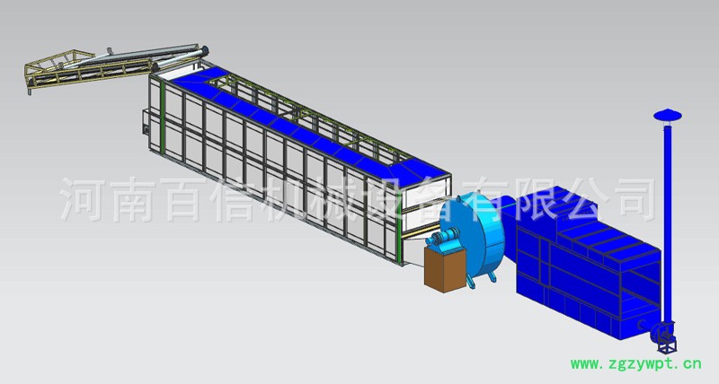 百信玉竹专用网带式烘干机主要由转换炉、网带式穿流干燥机、电控系统和其他辅助部件组成。转换炉提供热量;网带式穿流干燥机是干燥设备的主体,由机体和多层输送带组成;电控系统控制整个设备的启动、运转与停止。在其他辅助部件的配合下,干燥设备完成玉竹的上料、干燥与出料等工序,实现玉竹的干燥加工。