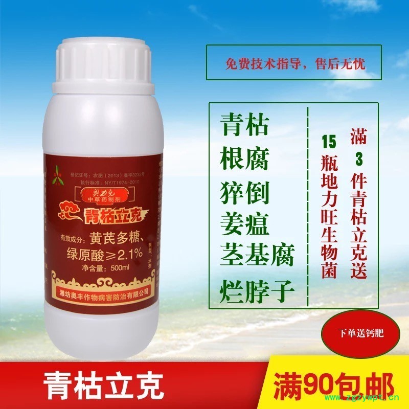 由于对中药材药残管制严格,种植户不敢用农药化肥。种植方式粗犷,肉苁蓉腐烂病(根腐病)严重,上病了不敢用药,导致很多用户不敢种。根腐病的主要病因是肉苁蓉长出地面后,风沙虫咬等造成的伤口经病菌侵染后引起根茎部腐烂,无法作为商品采收。还有些地区滴灌时间长,滴灌位置在肉苁蓉上部,浇水导致肉苁蓉附近土壤湿度太大,造成腐烂。针对这种情况,可用青枯立克滴灌来解决。青枯立克是中草药制剂,有有机认证,无农药残留,由二十多种中草药复方螯合而成,易于被植物吸收,而且也符合对中药材的管理规定。青枯立克有杀菌、营养复壮、促进伤口愈合的作用。可在滴灌时候先把药液滴进去,每亩地用青枯立克2瓶+大蒜油2瓶+地力旺2瓶滴灌,滴灌2次,用青枯立克100-150倍+大蒜油1000倍喷雾2-3次,每次间隔2-3天。