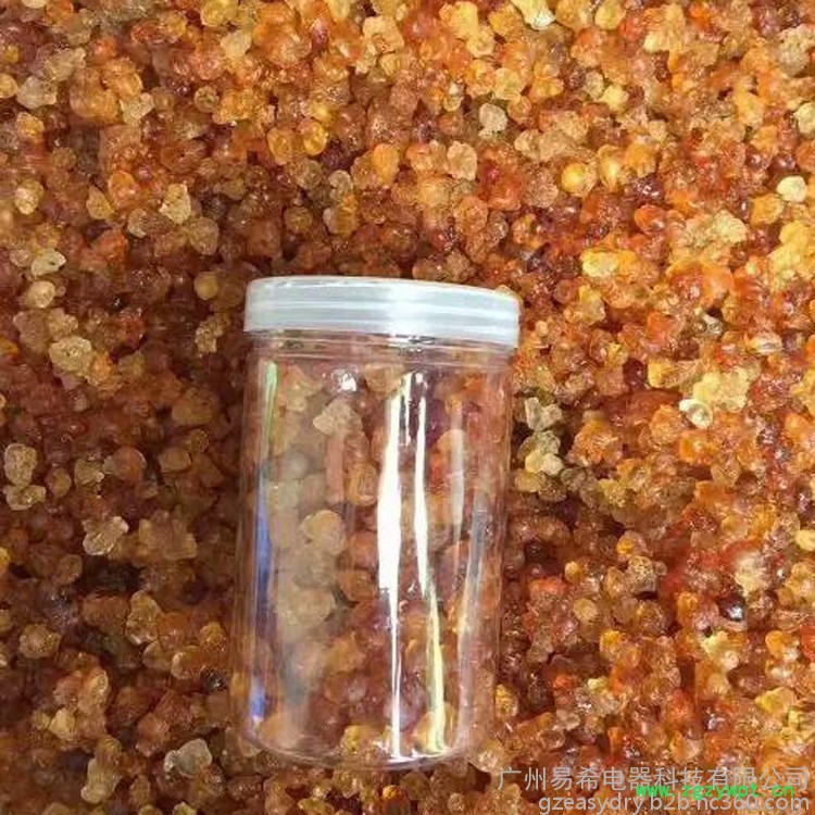 五、干燥放在不锈钢盘中用蒸气吹扫,或直接在锅内用火加热,加热过程中要不断翻动,干后得到含水50%的膏状产品。如用烘干,可得到纯固体桃胶。烘干的过程如下:将桃胶放入物料车托盘,每盘15斤,每车12层,单台车共180斤,6P主机带5.8米长3米宽2.2米高烘干房一次可以放入8台物料车,共放入桃胶1500斤,烘干过程需要12-15小时,温度控制在55度,连续除湿即可完成。
